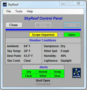 the included SkyRoof ASCOM driver, SkyRoof can interface with most imaging automation
